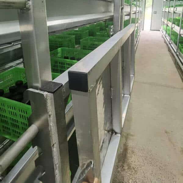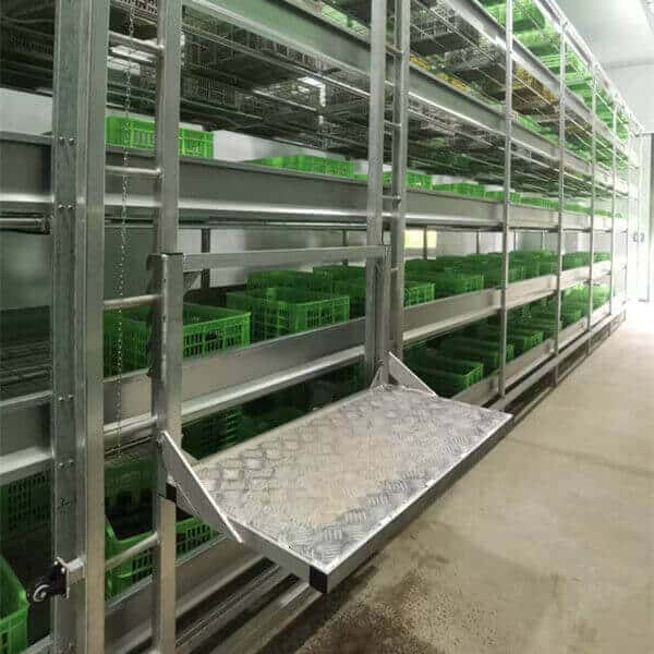 Mushroom picking lorries with a liftable platform allows for mushroom picking from every shelving bed. The picking lorries features a working platform with smooth adjustment of its working height, can move freely up and down, left and right, improve picking efficiency. Unlike our manual winch picking trolley, it’s manual lifted and can be equipped with guard rail according to requirements.